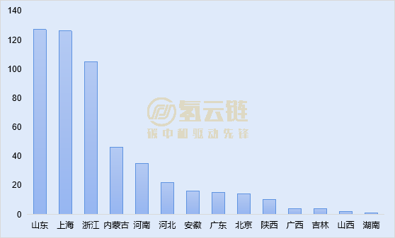 山东、上海、浙江位列前三。9月共有14省20市有燃料电池汽车上险数据,如图表2所示,从省级行政区来看,山东、上海、浙江位列前三,占比分别为24.1%、23.9%和19.9%。