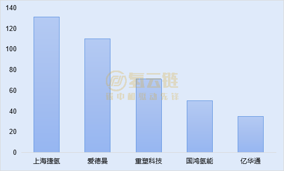 图表5 燃料电池企业配套装机情况(单位:KW)