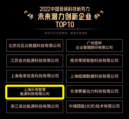 在本次大会颁奖典礼中,上海乐驾智慧能源凭借领先的技术与产品实力上榜“未来潜力创新企业TOP10” 名单。