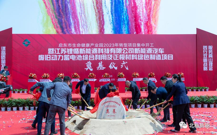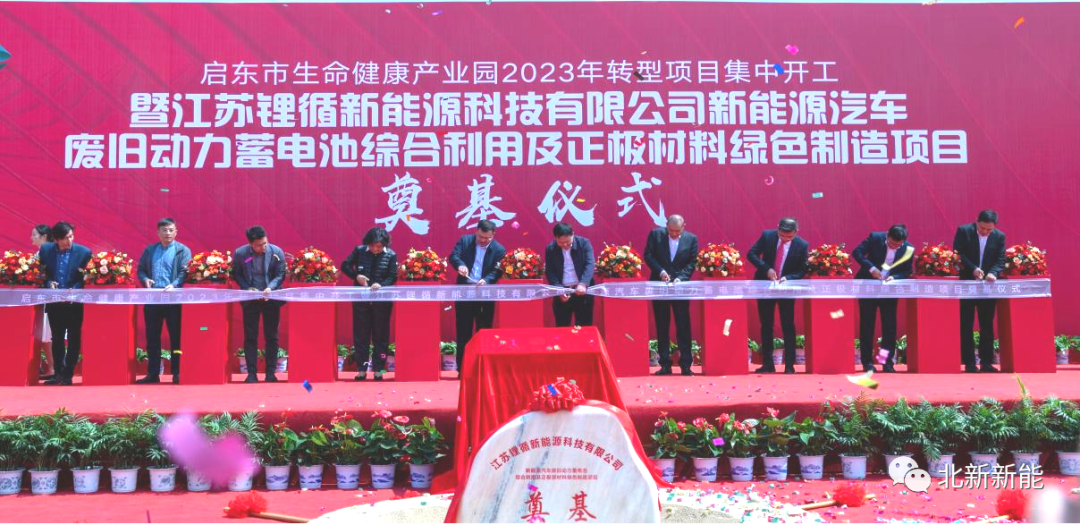 启东市市长杨中坚、副市长秦广荣,启东生命健康产业园党工委书记郁建峰、管委会主任茅东华,南通北新新能科技股份有限公司董事长成志芳、总经理唐明照,江苏锂循新能源科技有限公司总经理戴旭闽,中建三局第一建设工程有限责任公司执行总经理段旭阳,以及市政府相关委办局领导、产业合作伙伴等200余人出席奠基仪式。