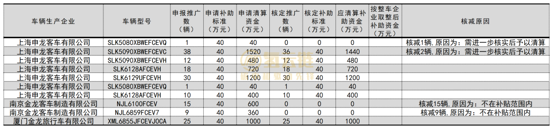企业方面,本次核算的4家车企中,仅有2家车企的申报获核准。申龙客车核算通过107辆,共计获得补贴4280万;厦门金旅核算通过25辆,共计获得补贴1000万。具体见图表2。